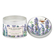 The soothing combination of purple blooms and herby sprigs graces a clean, crisp white background. Featuring notes of lavender and rosemary, this soy-blend travel candle is biodegradable and clean burning with an excellent fragrance throw. The decorative and versatile tin can be enjoyed at home or taken on the go thanks to its handy lid.