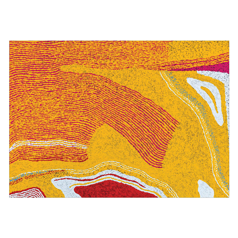 Tommy Watson, a senior APY Lands painter, was born in Western Australia in 1935. He grew up living a traditional life and was taught spiritual and tribal law teachings by his ancestors. Tommy began painting in his 60s, with a great knowledge of the Contemporary Aboriginal Movement. His iconic work represents his in-depth knowledge of his land, with large dots in red, pink, and orange. Tommy was a NATSIAA finalist in 2002 and commissioned to produced artwork for Musee du Quai Branly in Paris. His work is held in permanent collections across Australia, including the Art Gallery of New South Wales and the National Gallery of Victoria. Tommy sadly passed away in late 2017.