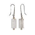 These elegant earrings feature clear, crackled rock crystal triangular tubes that shimmer like frozen ice. Accented with sterling silver beads, they capture a wintry, ethereal sparkle, adding a touch of icy sophistication to any outfit.