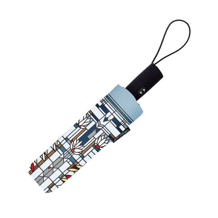 Going places has never been more stylish with this folding travel umbrella, small enough to tuck into a pocket or purse yet large enough to provide reliable coverage when needed. Featuring an artful Frank Lloyd Wright design, it includes a matching sleeve and wrist strap for easy carrying, making it a must-have accessory for commuters, museum patrons, day trippers, and world travelers alike. Showcasing Wright’s signature blend of geometric precision and organic inspiration, this umbrella brings his artistic brilliance beyond architecture into a functional, everyday piece that reflects his enduring spirit of innovation and design.