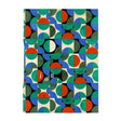 This holiday card set features a bold geometric design with playful colors and the word “jolly” set against a pattern of circles and half-moons. Packaged in a signature hard box showcasing the card image on both the lid and bottom, and secured with a protective paper band, the set includes 15 full-size cards and 16 white envelopes.