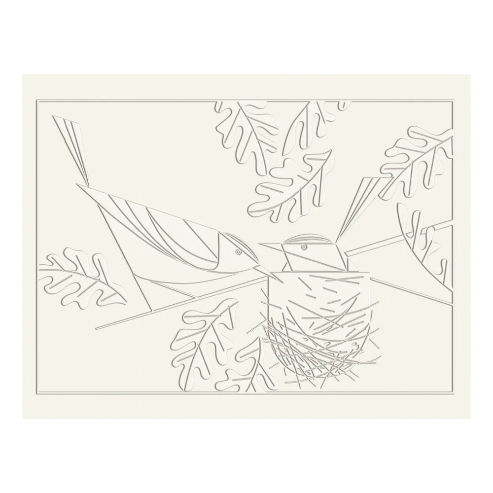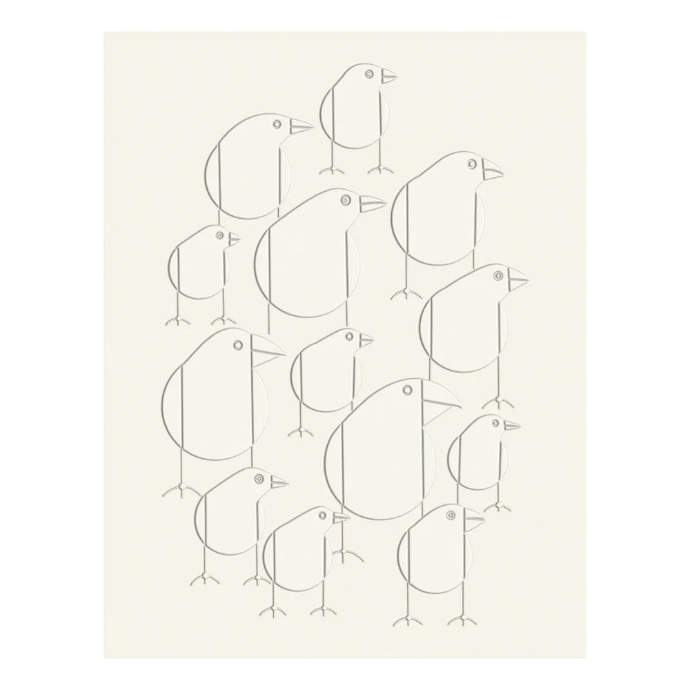 Charley Harper’s bird illustrations are beautifully transformed into embossed designs in this notecard set, offering a unique and elegant way to send messages. His signature geometric style and the endearing personalities of his feathered friends are elevated through the tactile embossing process, adding a sophisticated touch to your correspondence. As a devoted artist and conservationist, Harper’s "minimal realism" brings nature’s beauty to life, making this set not just a way to share notes but a tribute to his legacy. Featuring four of his most cherished bird designs—Midnight Snack, Cardinals Consorting, Red-eyed Vireos, and Darwin’s Finches—these notecards are embossed on high-quality recycled paper, giving them a rich, textured feel. With 12 cream-colored notecards (3 each of 4 designs) and soft white envelopes, all packaged in a decorative box, this set provides a stylish and eco-friendly option for thoughtful communication.