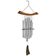 Expertly tuned to harmonic overtones, this wind chime creates the illusion of more tones than there are tubes, producing a rich, layered sound. Crafted from ash wood in a black and cherry finish, it features nine silver aluminum tubes that deliver both visual elegance and soothing resonance.