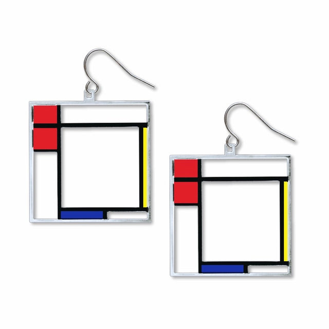 These Mondrian Composition earrings showcase the Dutch artist's iconic use of lines and squares to evoke balance and harmony. Made of solid brass with a non-tarnishing silver finish, the giclee print and hypo-allergenic ear wires make these earrings a fun and easy-to-wear addition to any jewelry collection.