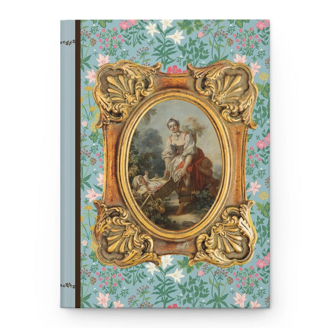 Featuring Joys of Motherhood by Jean-Honoré Fragonard, a master of Rococo charm and intimacy, this elegant notebook brings 18th-century artistry into your everyday. The matte laminated cover showcases a full wraparound of Fragonard’s playful scene, framed in a Trompe-l'œil style border—a painted illusion designed to look like a real, ornate frame. With casewrap binding and perforated pages for durability and ease, this notebook blends beauty and function, inviting a touch of historical whimsy to your thoughts, sketches, and daily musings.