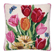 Celebrate the joy of spring with this vibrant wool hooked pillow designed by Sally Eckman Roberts. A lively bouquet of red, pink, and golden tulips paired with cheerful daisies and fluttering blue butterflies brings bright color and garden charm to any sofa, chair, or bed. The 100% New Zealand wool hooked front adds rich texture and dimension, while the soft poly velvet backing provides comfortable support. Complete with a polyester insert and zipper closure, this pillow offers an easy way to refresh your space with fresh, uplifting floral style.
