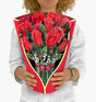 Send lasting love with the Red Roses Large Pop-Up Greeting Card! This classic bouquet features a full dozen red roses, with a sprinkle of baby's breath, for a timeless and romantic gesture. Each card also includes a blank coordinating notecard, making it perfect for any occasion. Show your love and appreciation to your sweethearts, teachers, mothers, and more with these beautiful pop-up flowers. Its fold-able design allows you to reuse and enjoy your bouquet for years to come!